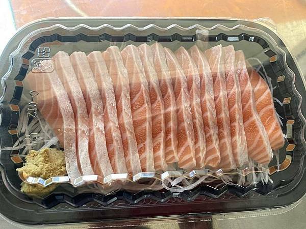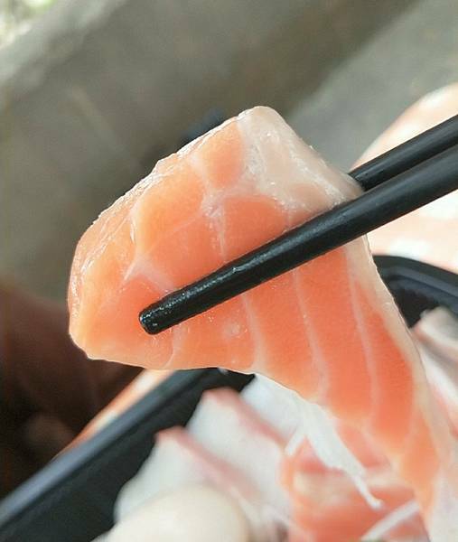 鮭魚脂肪分佈的很均勻,每片鮭魚的厚度肉眼可感受到,吃起來已經有入口即化的口感了👍,看下面的圖就知道我沒有誇張它👇