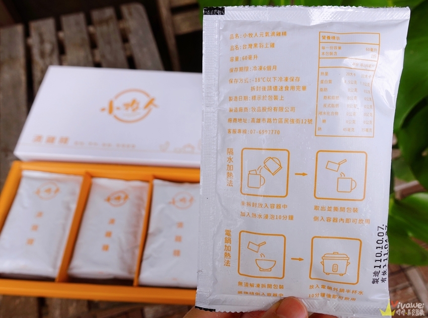 ▲小牧人滴雞精一盒12入~外包裝也很精美~送禮也很體面!每一包滴雞精是60ml,盒子背面也有營養標示!而滴雞精需要冷凍-18度c保存~可以保存半年的時間!