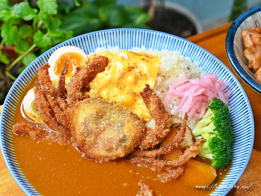 台中好吃咖哩飯再一間~這間隱身在巷弄裡的倆月半,主打咖哩飯及湯咖哩烏龍,香濃咖哩讓人欲罷不能,除了白飯,店裡頭還有最近夯到不行的花椰菜米可以選擇,營業時間從早上十一點半至晚上七點半,中間沒有休息,就算下午想吃咖哩飯也吃的到~