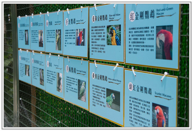 看到了好多不曾見過的漂亮又稀有的鳥類,大籠子外還有每隻鳥的特色與原產地