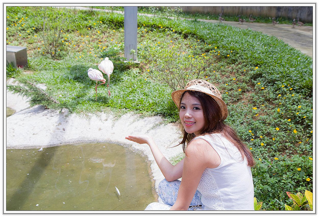 進入綠簾子裡面就有許多野生沒有籠關的:鴛鴦、紅鶴、黑天鵝、藍孔雀....等,