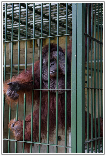 它是一隻公的正值壯年時期的黑猩猩,帶著溫柔又多愁的眼睛。