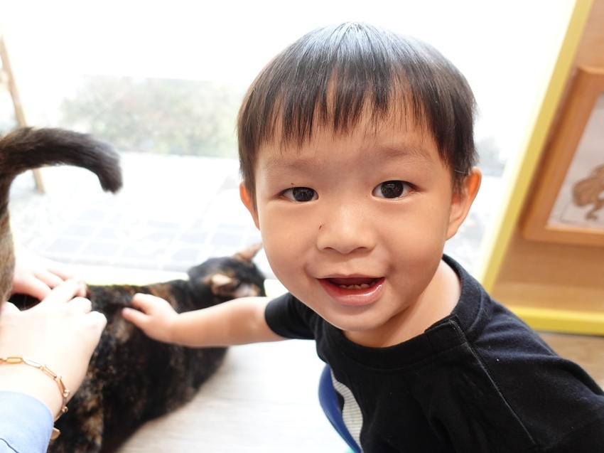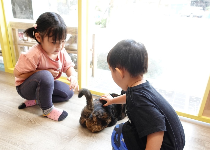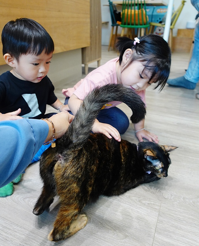 嚕貓過程中,我們餐點也上桌囉。不建議肚子很餓的人來,因為餐點現做等候時間真的比較久,大約需要半小時左右。女兒一開始還沒摸到貓時,就一直問為什麼餐點還不來???(糗)