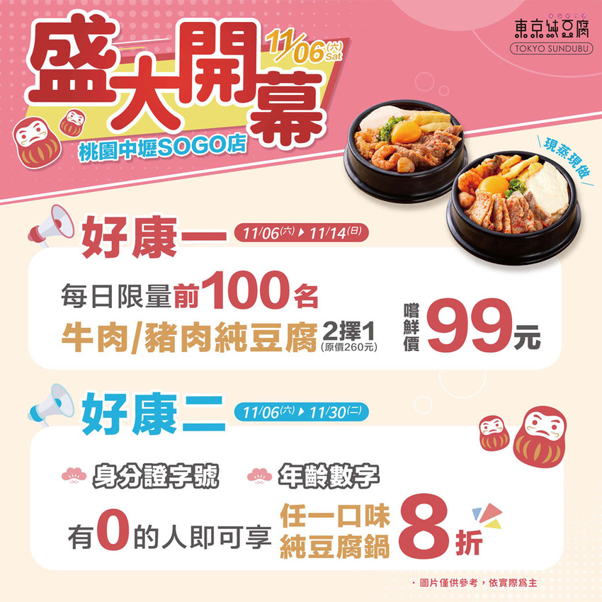現在東京純豆腐因為新開,所以活動還蠻超值