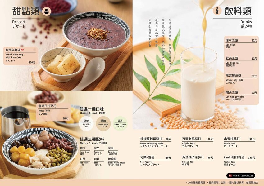 除了有中壢店專有的擂茶糖水之外,還有豆漿跟黑糖兩種選擇