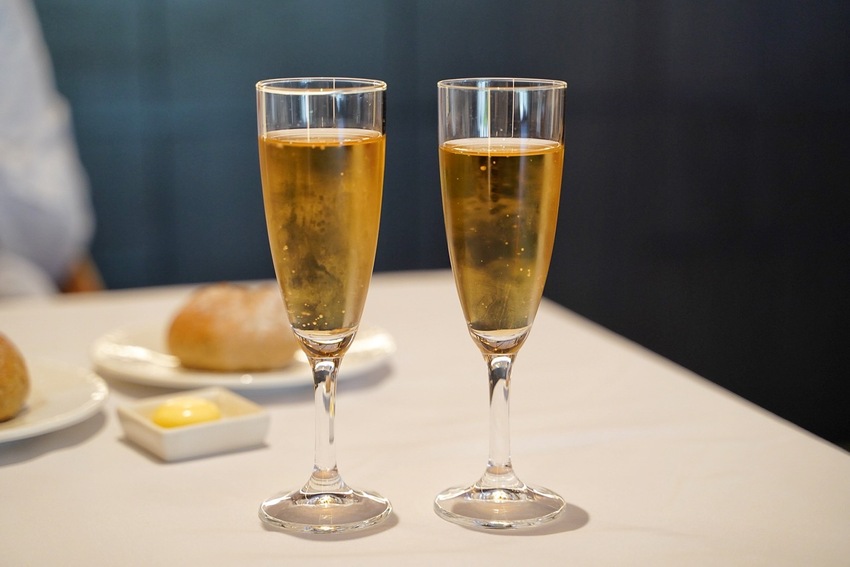 餐前先送上無酒精氣泡飲,喝起來就像白葡萄香檳,氣泡感細緻又充足,可免費續加!