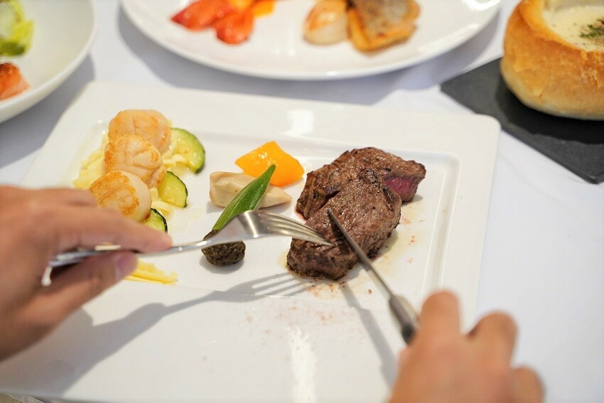 想要海陸雙享受,可以點「嫩煎干貝佐松露菲力」來滿足你的口腹之慾!