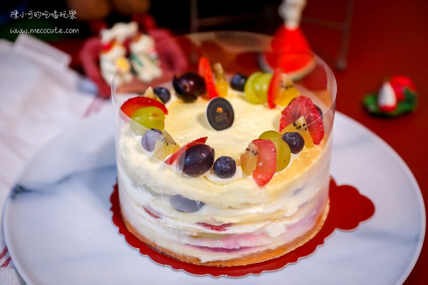水果千層蛋糕畫龍點睛的是每一層的新鮮水果就像是個別存在卻無法少任何一種,紅龍果的甜蜜多汁、奇異果的酸甜、葡萄的甜脆還有草莓的韻味,輕盈滑順的鮮奶油存在,每一層都是清雅和甜蜜的滋味,這我直接吃兩大片都可以,真的超推薦。