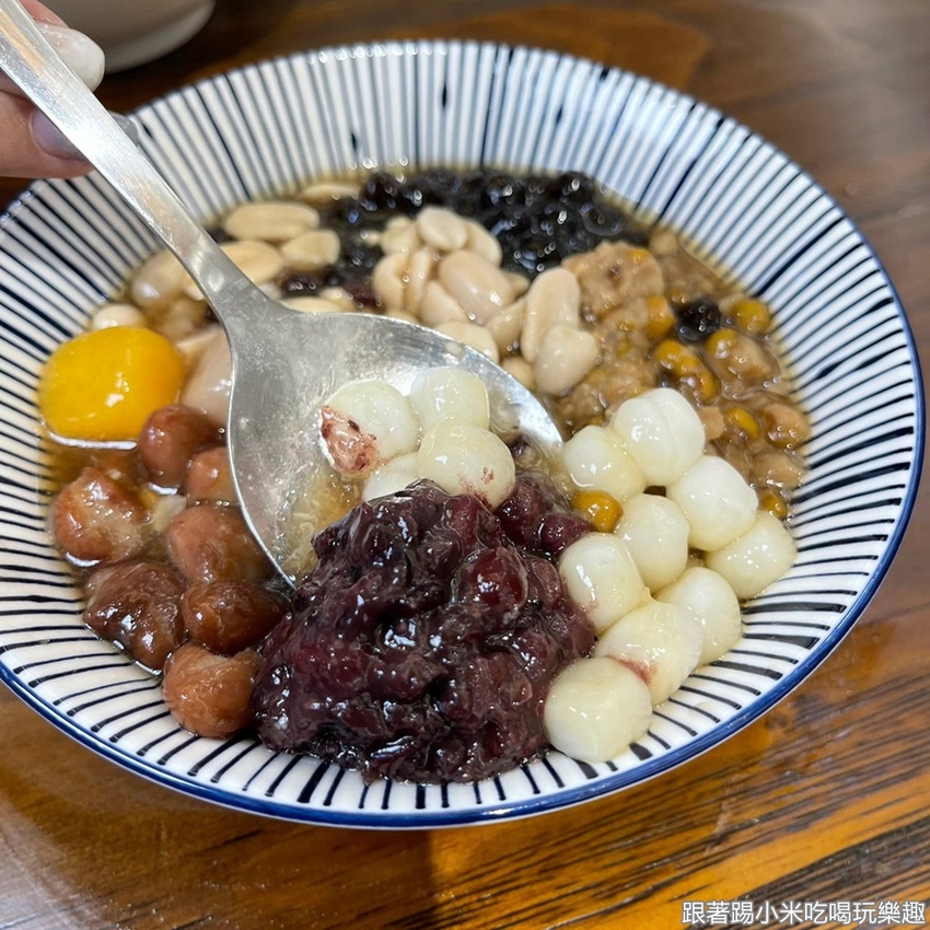 如果不喜歡吃豆花的朋友,可以嚐嚐他們的綜合甜湯(60元),有花生、薏仁、綠豆、芋圓、珍珠、紅豆、湯圓及大紅豆,真的是料多多!