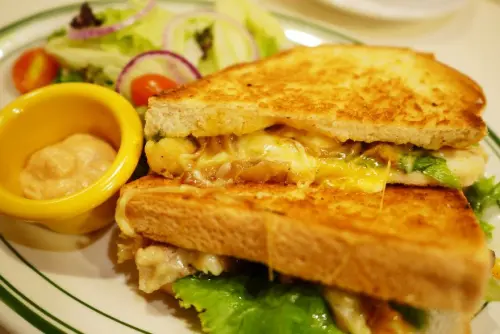 一般的大阪燒做法很簡單,低筋麵粉、生蛋、蔬菜、肉類或海鮮配料均勻混合後再放到鐵板上煎烤,這裡的新大阪style大阪燒似乎結合了一點廣島燒會加入炒麵的風格,只是替換成了烏龍麵;外層裹了一層粉跟淋上甜甜的醬汁與美乃滋,撒上點柴魚片跟些許的紅薑與蔥末,令人食指大動的口感,無比的美味。