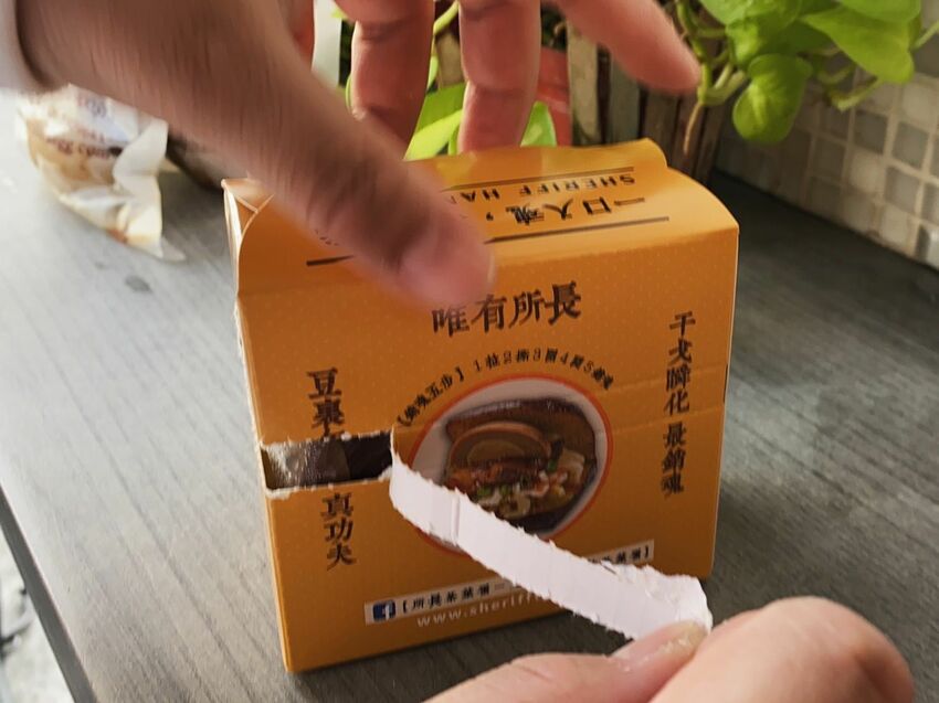 吃之前,從旁邊撕開邊條,就可以打開上蓋