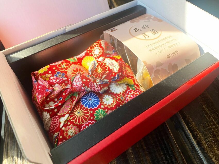 花色好像每一盒都不一樣的樣子,我拿到是這種大紅色的日本花布,超可愛的