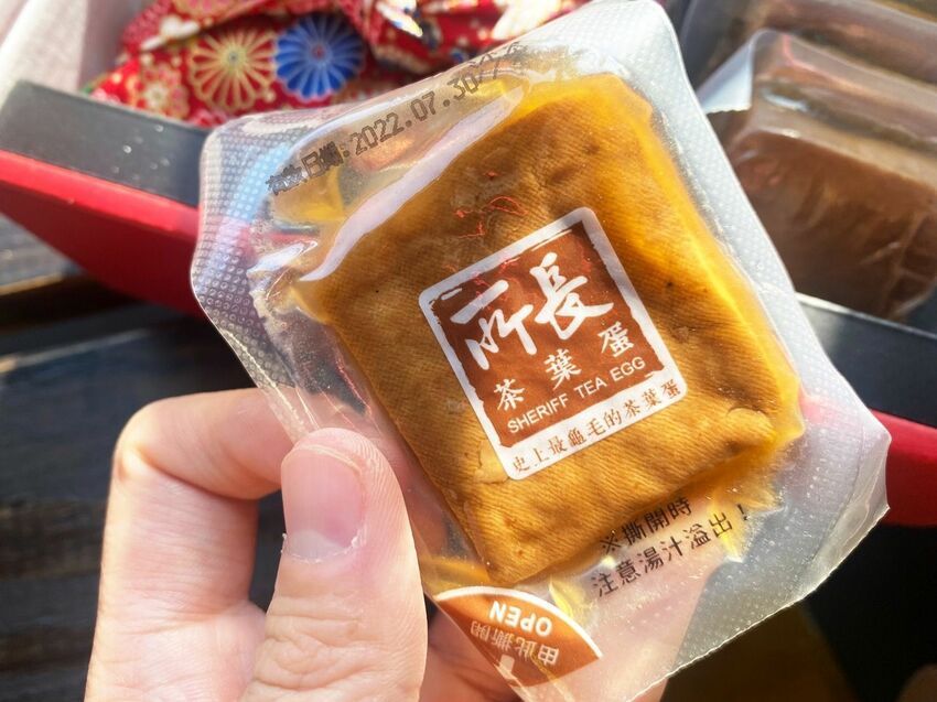 到了所長茶葉蛋的店面,就會看到桌上有滿滿的好料可以買,還聞得到香噴噴的茶葉蛋香氣喔!