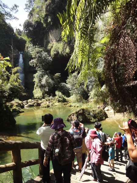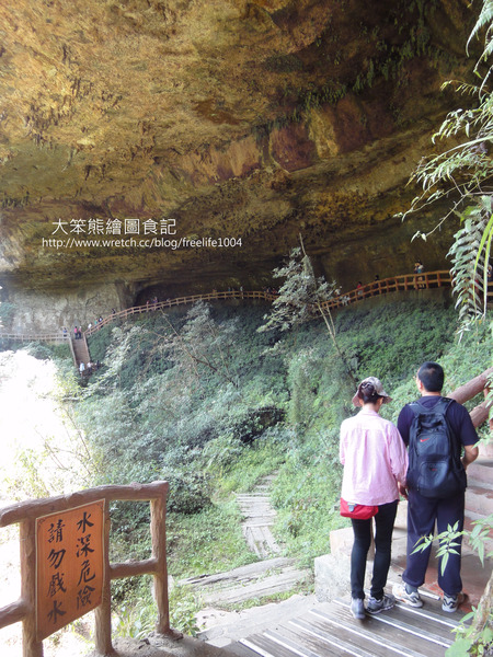 要到達瀑布要先走過 天然石洞,樓梯是沿著石洞而搭成的{太強了
