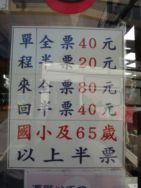 遊園車購票處:單程:全票 40元;來回:全票 80元。
