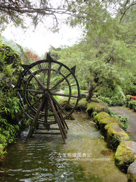 經過水車後會看到 標有杉林溪的 中型風車 ,藥花園裡的是 大風車