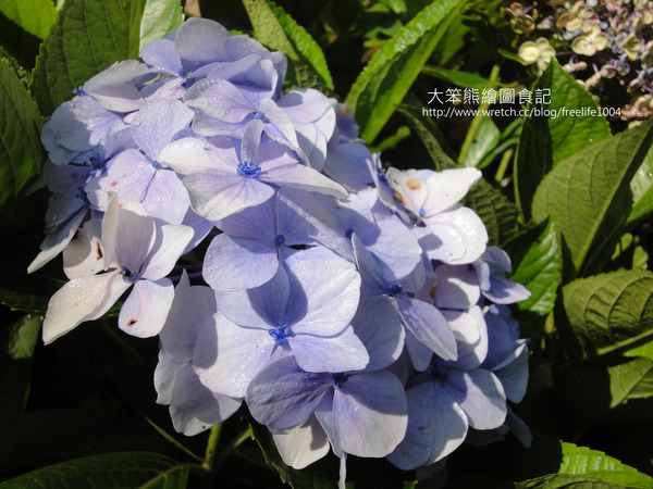 園區內的繡球花有 — 藍紫色、粉色、 白色 。(水噹噹