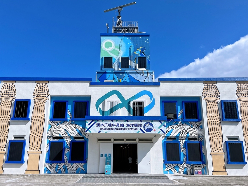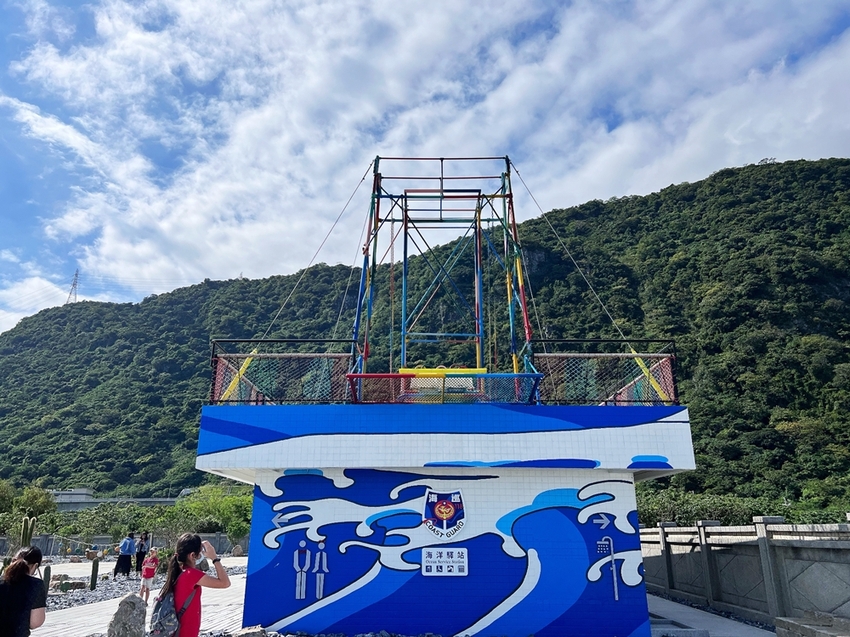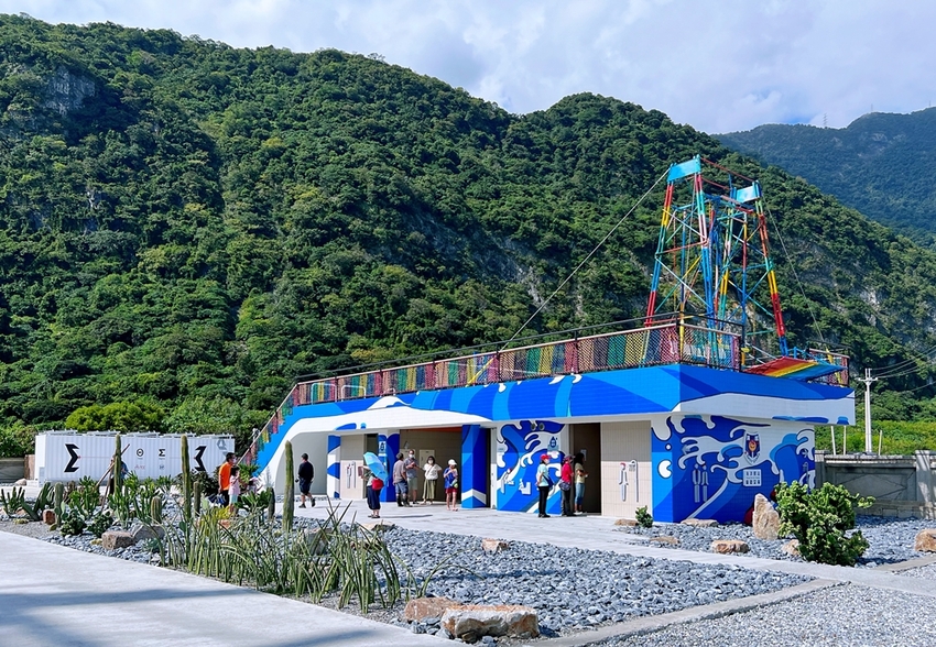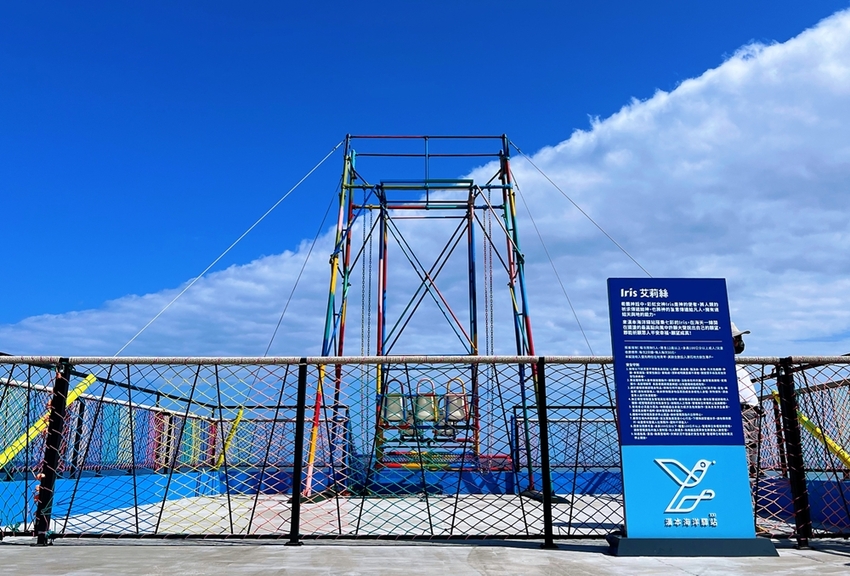 漢本海洋驛站是台泥集團運用廢棄的安檢所的空間與孩巡署共同合作打造一座以藍色為基底的海洋風建築外觀融入部落圖騰,在藍天大海下顯得格外的吸睛;而在驛站旁的建築樓頂,還設計了一座彩虹「IRIS艾莉絲鞦韆」!