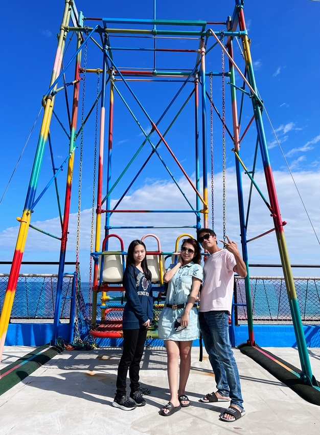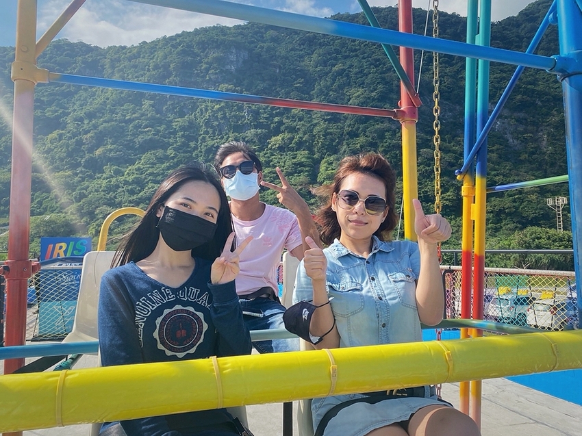 搭乘IRIS艾莉絲鞦韆建議提前5分鐘左右在一旁等候,在搭乘的一開始或是結束後,工作人員都會協助拍照留念,而搭乘的過程,安全帶一定要繫好繫緊,若有拿手機想要攝影拍照的朋友,自己可要拿穩拿緊,乘坐IRIS艾莉絲鞦韆就好好使蠻力,用力擺盪去享受吹海風、看海天一色無敵美景盡收眼底的快感,想要大叫就利用這個機會大聲叫出來,說真的這感受很過癮!
