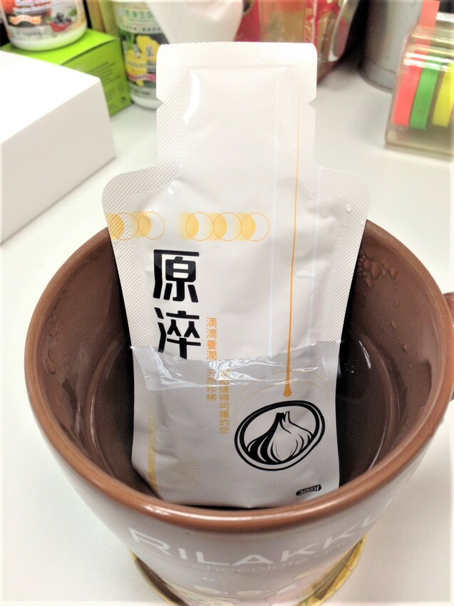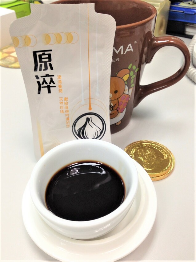 隨手包黑蒜精濃縮的顏色更黑,味道一樣美味,也是打開直接就口很方便,上班或出差帶個幾包放身上,每天都可以享用,體力up up。