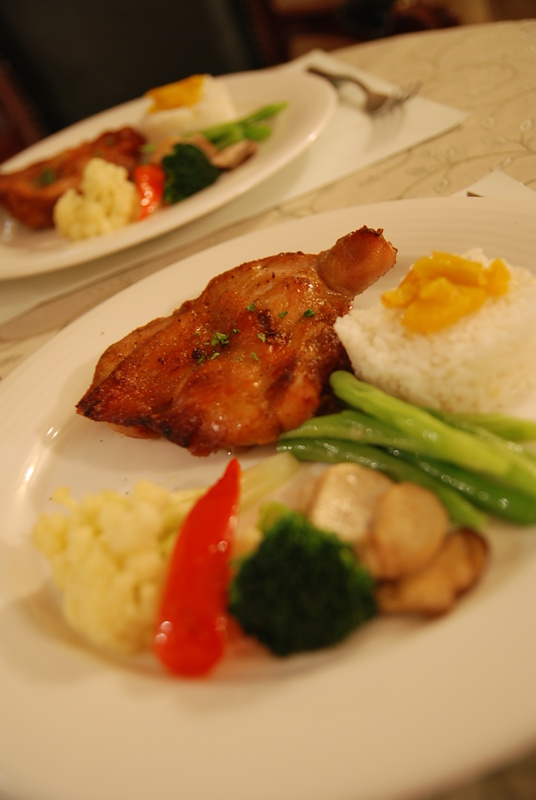 等主餐來我與小冠都點法式香草腿排,SIZE真的不大,吃起來很普通,