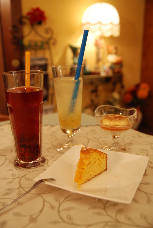 餐後的飲料我們點了洛神花茶與香柚茶,還有千層蛋糕與布丁,