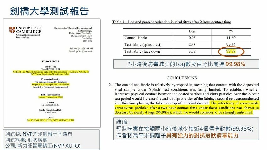 奈米銅離子N95口罩通過美國FDA(食品藥物管理局)及CE(歐洲合格認證)的商品雙認證,並且是全球唯一經由劍橋大學及Texcell檢測,可有效減少(reduce)冠狀病毒 99.9%,相關的檢驗報告在新力旺的官網都可以清楚的看到唷!