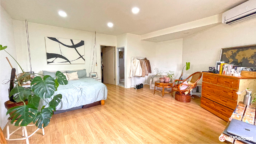 走進寬敞的臥室,映入眼簾的是一面超大的木質鏡子,Henry &Donny許多的ootd就是在那邊拍攝的,那面鏡子也巧妙的讓空間有放大效果。