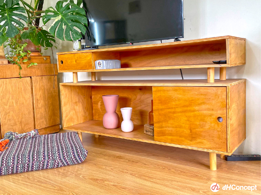 說到一起製作的第一個傢俱電視櫃,兩人覺得原本的太矮、太小,有些喜歡又太貴,所以Henry提議上網參考想要的電視櫃,用致敬的方式,來自己動手做。在製作前,他們也討論一陣子,雖然兩人都很喜歡「木頭」元素,Henry可能會覺得老物更有味道、特色,但對於Donny而言更希望可以時髦、拍照好看,因此重要的是「尋找什麼樣的風格適合這個家以及讓兩個人的喜好達成共識」。