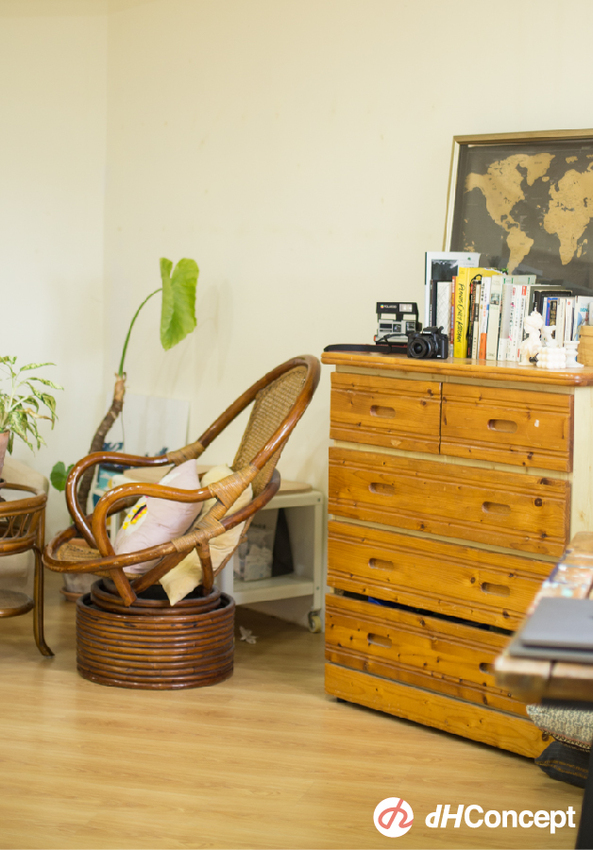 「阿嬤chair」絕對是Henry &Donny家中很有故事的物件,Henry笑說和爸爸媽媽在台灣逛二手市集時看到這張椅子,爸爸看到這張椅子就驚呼太好看一定要買,雖然對很多台灣人來說,會覺得這種椅子是阿公阿嬤坐的,但Henry透露在法國這種手作藤編的椅子是很貴的,所以看到就馬上決定帶回家,雖然不會坐在上面,但當作擺飾,也使空間變得很有風格。
