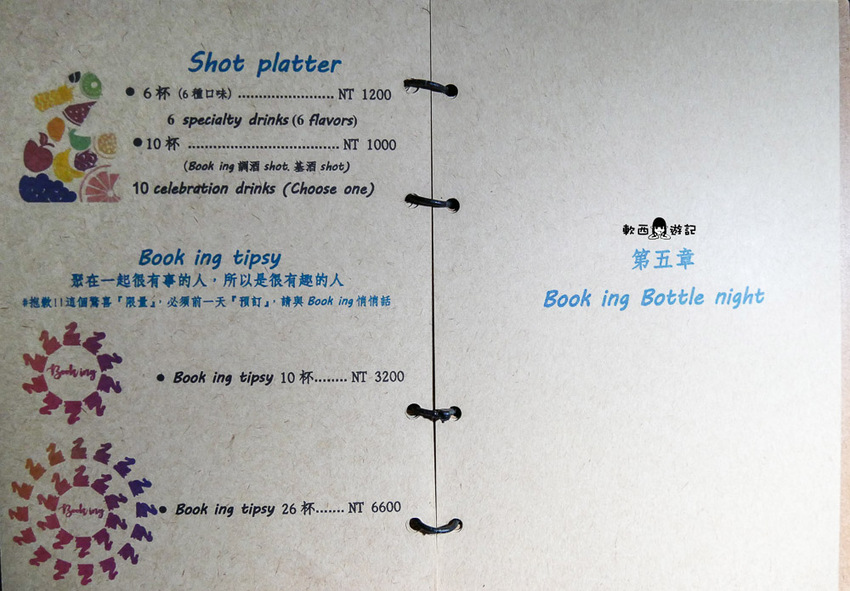 ✓Book ing bar菜單