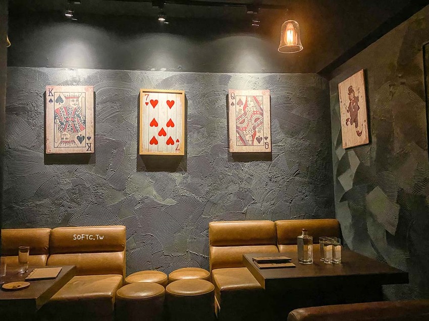 除了兩大桌沙發區,方才的撲克牌區域,其他大部分都是高腳椅區,三五好友來都很合適。Book ing bar提供多種創意酒款,有童話故事、水果系列、調酒師特調等,還有許多好吃下酒小點,文末有完整Book ing bar菜單可參考。