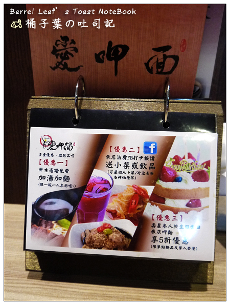 這次來~發現他們多了不少優惠活動,優惠一就非常吸引葉子,學生證加湯加麵免費呢!