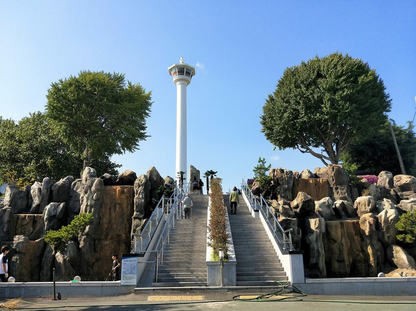 釜山的龍頭山公園용두산공원(Yongdusan Park),交通便利,搭地鐵到「南浦站」7號出口,往左邊光復路走即可到達,公園入口處相當好認,有告示牌提醒寫著龍頭山公園,從公園內還能順便登上釜山塔(BUSAN TOWER)