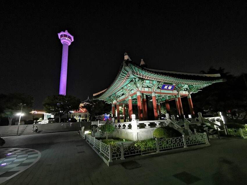 釜山的龍頭山公園용두산공원(Yongdusan Park),位於人潮熱鬧滾滾的商店街上,白天忙著逛街掃貨,晚上想看釜山夜景,就可以選擇來這,放慢步調上去走一走