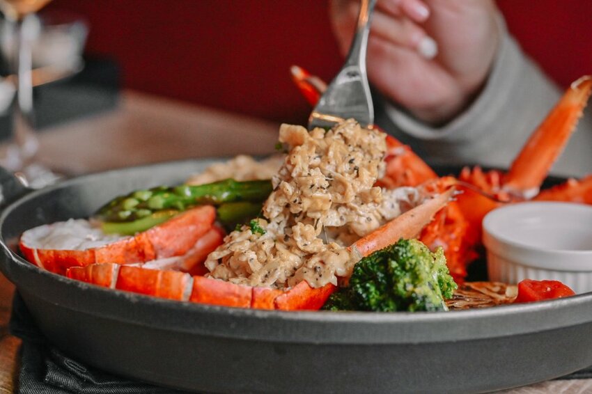 在龍蝦上還多了松露炒蛋,搭配配菜烤蘆筍、花椰菜、小蕃茄以及明太子醬,這道我愛慘了一整個質感爆棚,完全不輸牛排,氣場非常強大,加價真的非常超值!