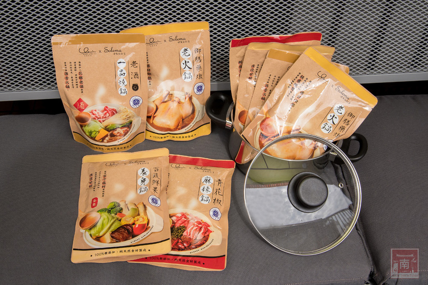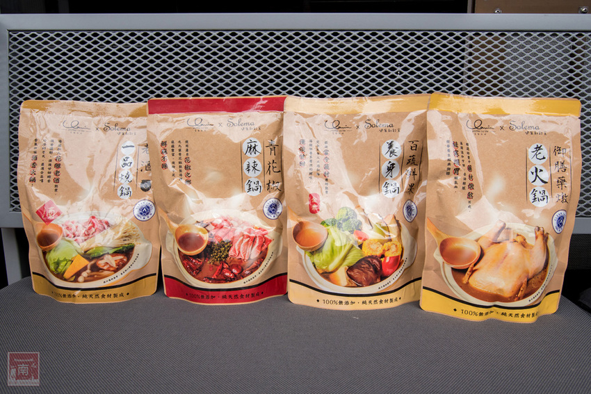 推出四款口味,有『百蔬鮮果養身鍋』、『青花椒麻辣鍋』、『老酒一品燒鍋』和『御膳藥燉老火鍋』,無添加、低熱量,而且打開包裝再加入400cc的水加熱、烹煮,不管煮火鍋、當消夜、當正餐都很便利。