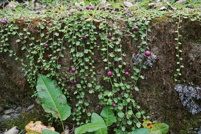 普辣特草是匍匐性草本植物,紫色的果實好可愛。