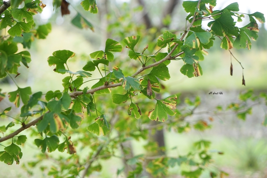 銀杏葉雖尚未轉黃,但姿態好美~
