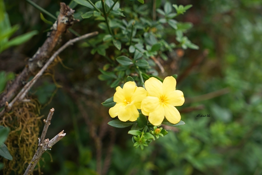 季節錯亂的迎春花,此時也跑來湊熱鬧的開了一兩朵。