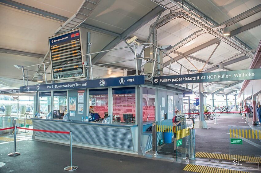來到奧克蘭港灣的 Downtown Ferry Terminal 的購票處。詢問了一下票價,若沒有使用AT Hop Card,成人一張單程票價為 NZD 6.5,若有的話,單程票價只需要 NZD 4.5 (回程票價不變)。