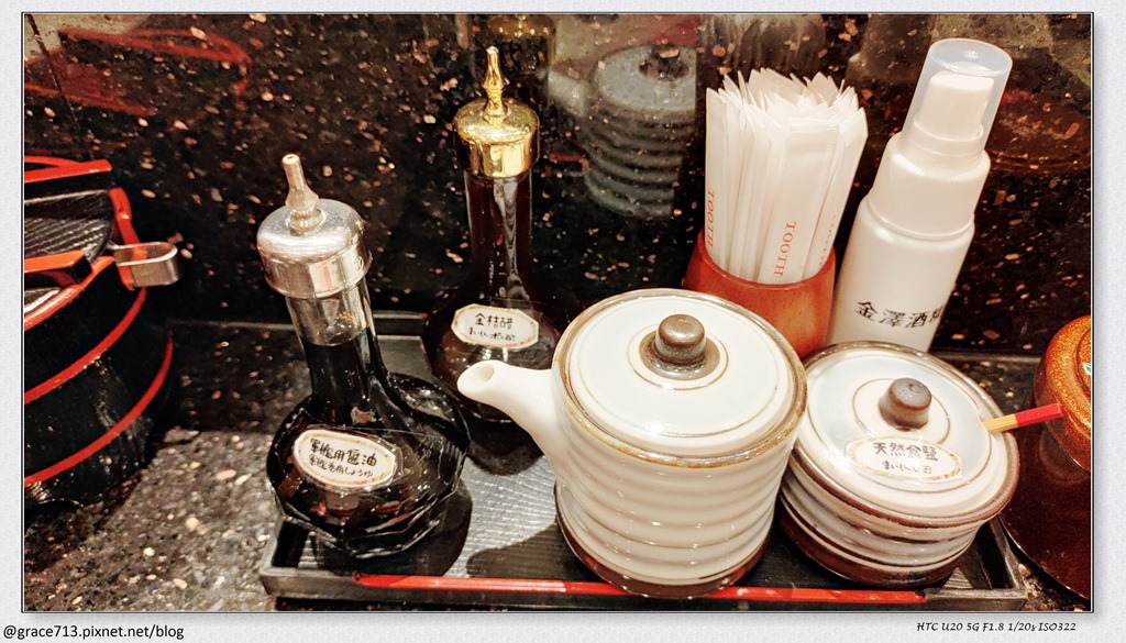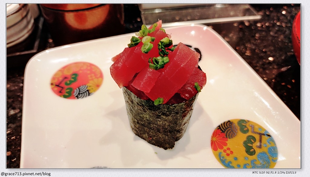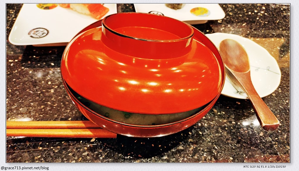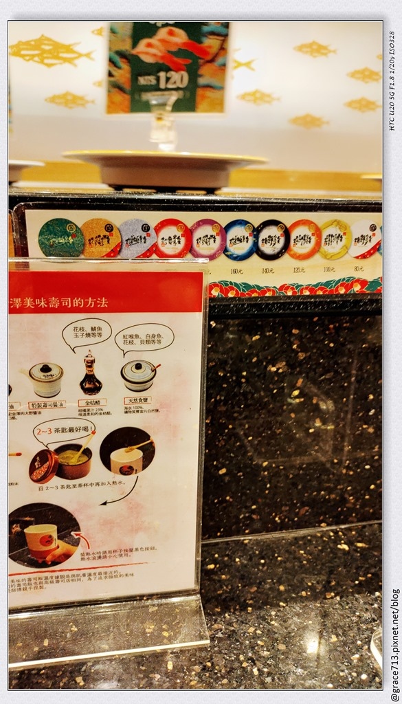 餐具看起來超高級, 所有的壽司盤都是瓷盤, 而吧台是大理石桌面, 我放下時都超小心, 很怕太用力撞到..