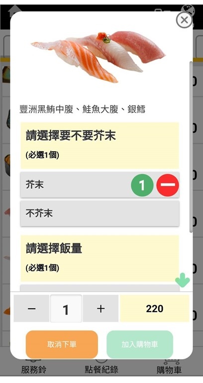 點選時, 我注意到同一品項, 有分一貫80, 二貫 150 之類的, 也就是點二貫比較便宜,