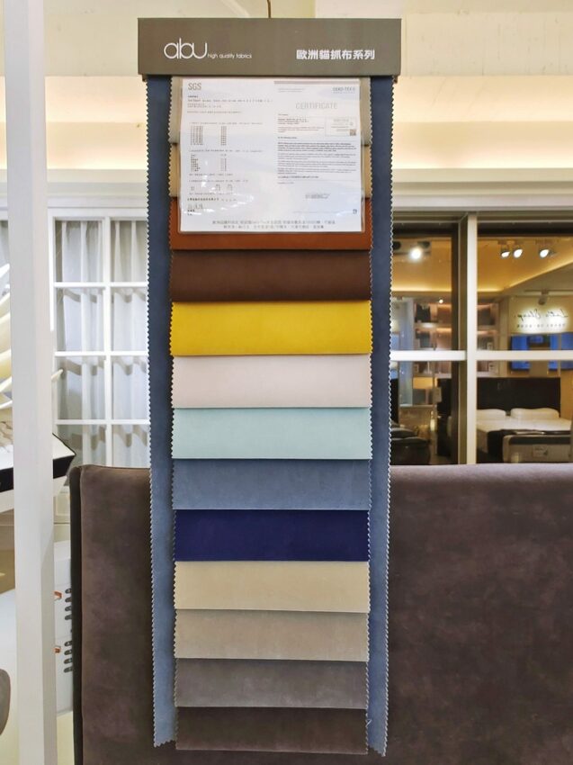 ▼GAGU SLEEP 台北中山睡眠體驗店除了展售床墊,也有販售床架、枕頭、床頭板。床頭板能自行搭背布料,有為鏟屎官們準備的歐洲貓抓布系列。