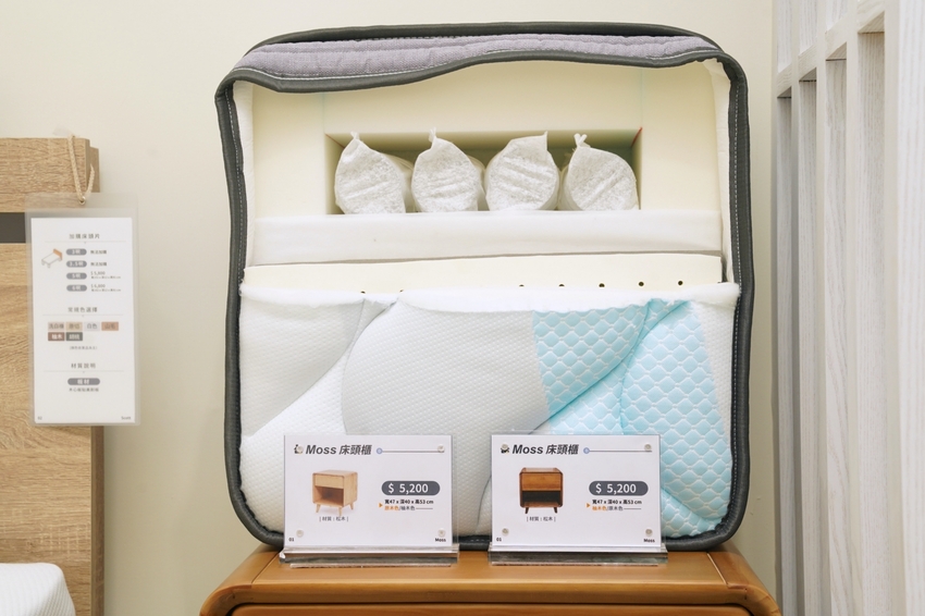 ▼每張床墊都有放上與官網同步的產品卡,當看到大量資訊不知如何消化、選購時,把自己的需求告知服務人員,他們都會親切地提供建議,幫助消費者快速選出適合自己的床墊。