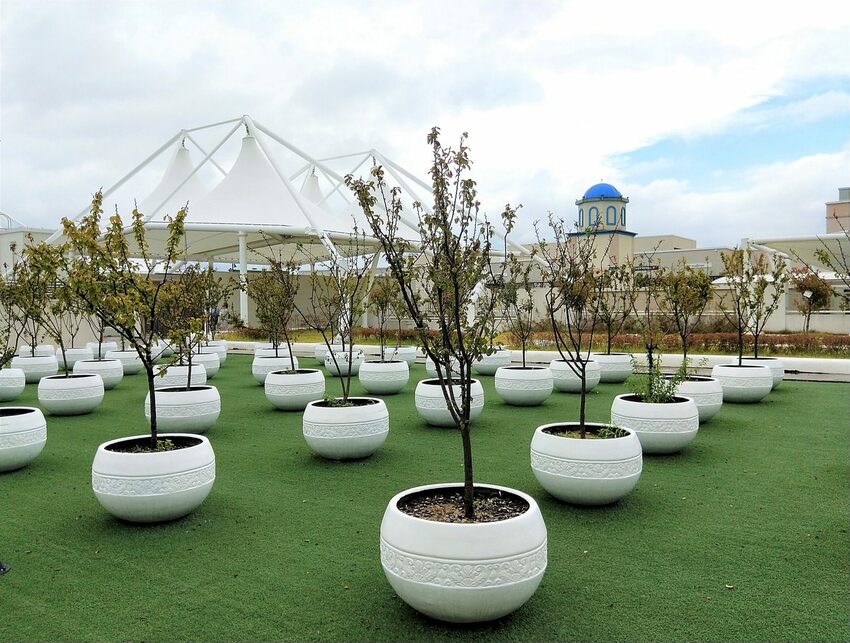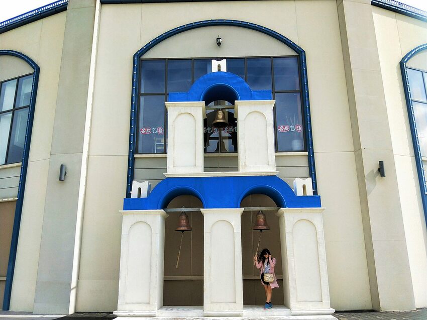 我們沒有急著進去購物中心,看到一樓園區外的希臘愛情鐘,就先過去晃晃啦!由於剛剛有其他人把這裡當做抽菸區,所以造景雖然很美,但還殘留著一點菸味