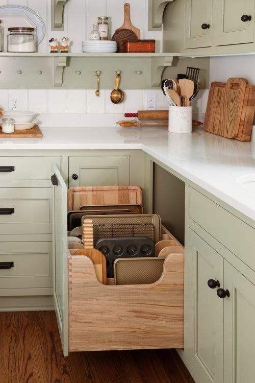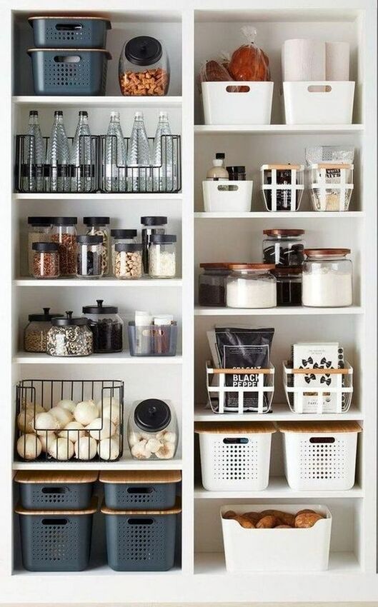收納物品的時候,考慮視線高度來選擇位置非常重要,在視線可及的高度放置平日常用的物品會方便很多。視線以下的位置用拉籃或者抽屜式收納更為方便。