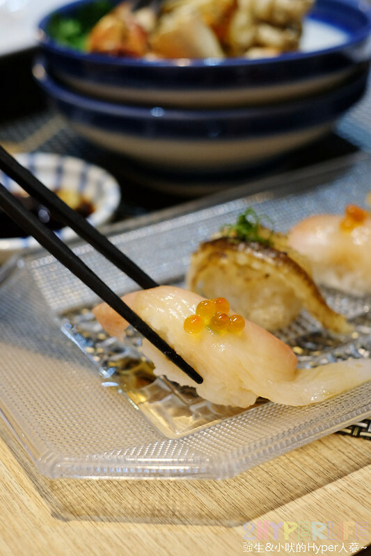 鬼頭刀握壽司的魚肉肉質口感軟Q,搭配魚卵讓整體風味更有層次感~