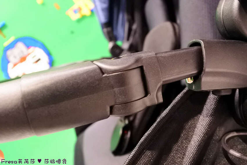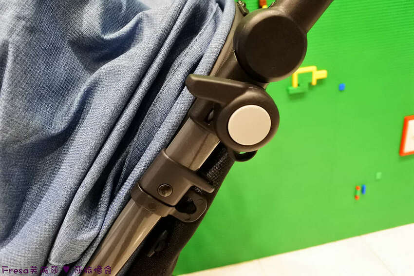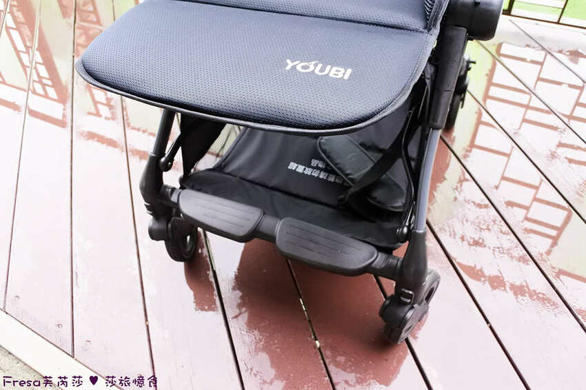 這台「德國Youbi雙向折疊嬰兒推車」一鍵煞車紐,超方便.