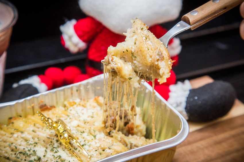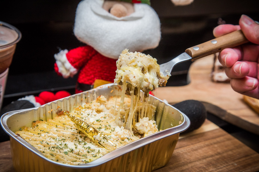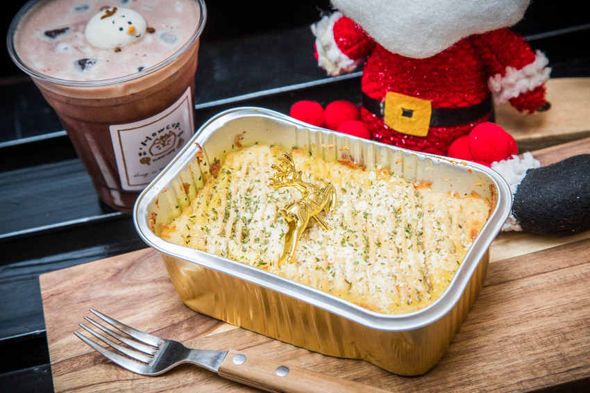 復刻聖誕牧羊人派都是現點現做,大概需要20分鐘左右,建議可以先點再回來拿,牧羊人派源自英格蘭的一種特別的餡餅,好咖在底部鋪滿手炒肉醬,灑上三種起司,再加一層香滑細緻帶有顆粒感的馬鈴薯泥,還有好咖經典的熟成牛肉黑咖哩,層層疊出絕妙好滋味,而且份量很多,吃完很有飽足感